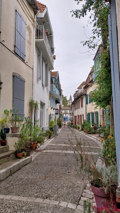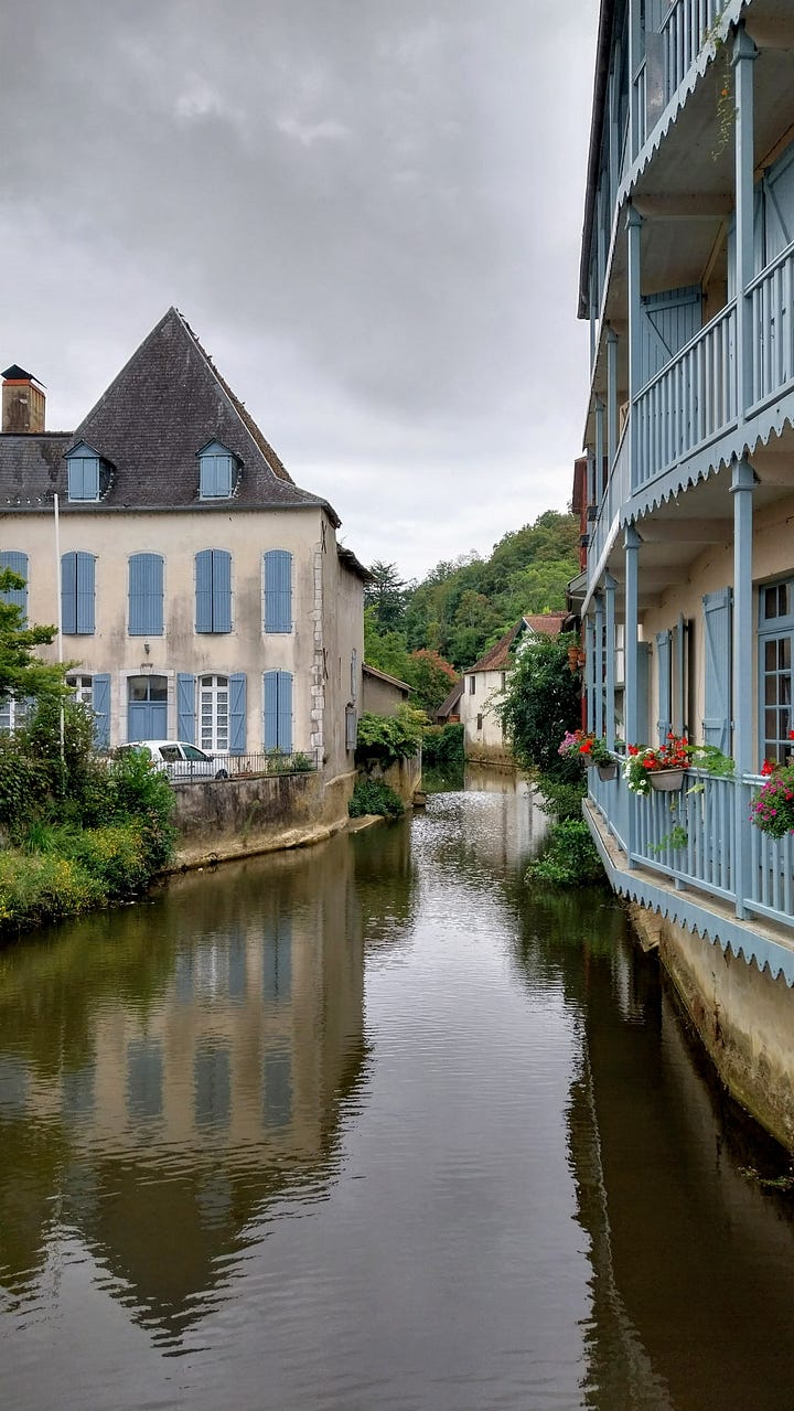 No me canso nunca de venir a Francia y no me canso nunca de admirar sus ríos. Con esa cantidad de agua parece que tener un pueblo bonito es sencillísimo. Todo es verde, todas las flores brotan, hay siempre una frondosidad exuberante. Hoy ,mientras recorríamos Salies de Bearn, me he descubierto pensando en si determinada flor o planta irían bien en Orbela. ¿Cuándo me he convertido en alguien que piensa en plantas?