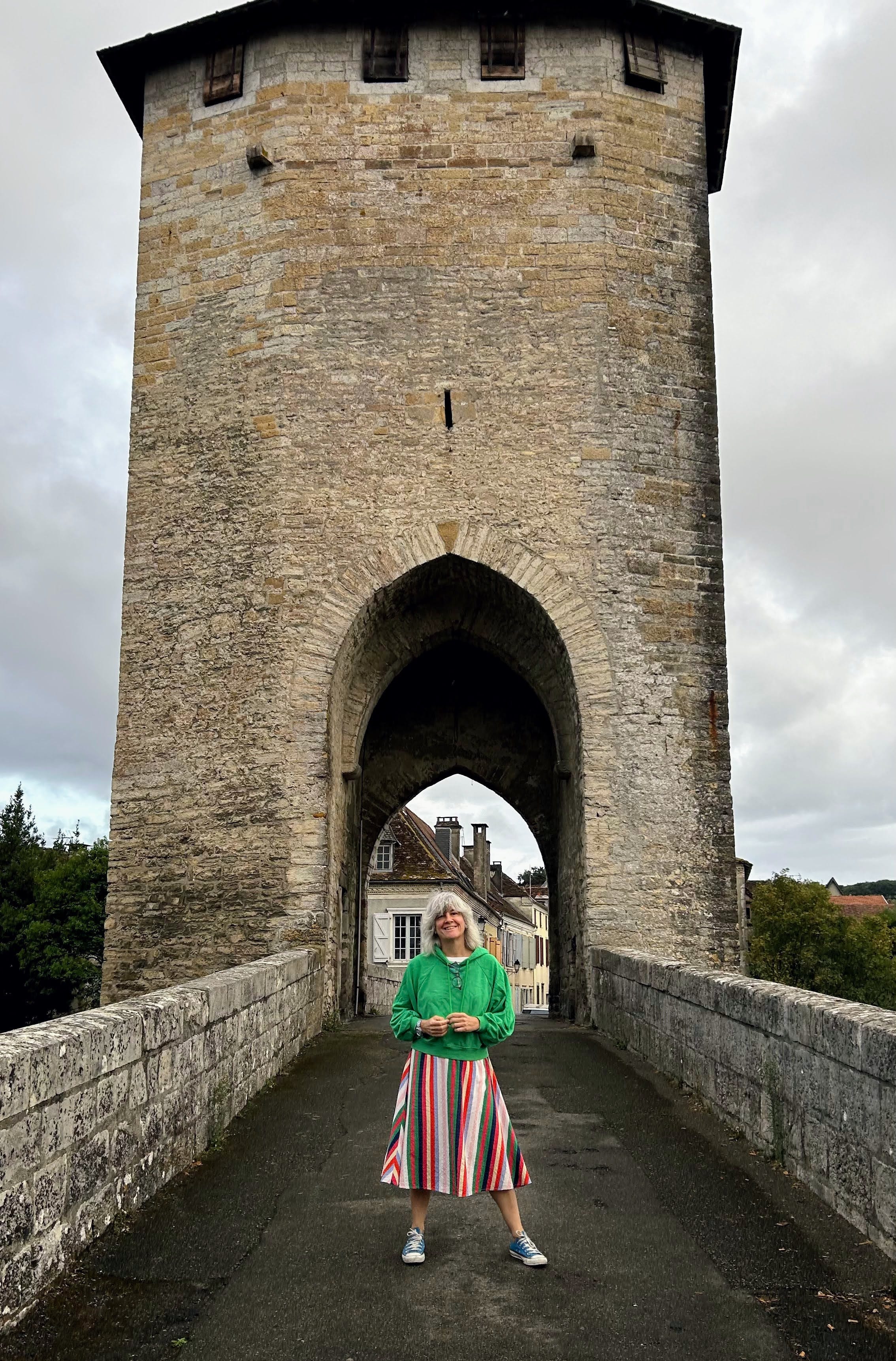 En Sauveterre-de-Béarn hemos comido jugando a «Si pudieras matar a alguien sin consecuencias ¿a quién matarías?» y hemos conseguido acabarnos las enormes raciones que nos han servido. Al entrar a visitar la torre medieval nos ha recibido otra señora muy entusiasta de su trabajo que nos ha cobrado a los cuatro la tarifa de estudiantes y se ha ofrecido a hacernos la visita guiada en español. Hemos declinado el ofrecimiento y menos mal. Resulta que la visita, guiada o libre, solo incluía pasearse alrededor de una maqueta del pueblo en la época de su máximo esplendor medieval. Nosotros la hemos admirado lo que hemos considerado el tiempo suficiente como para que la señora entusiasta pensara que nos había encantado. Al ir a salir nos ha dicho «se me ha olvidado decirles que pueden hacer fotos a la maqueta» Hemos murmurado Merci y hemos salido huyendo.