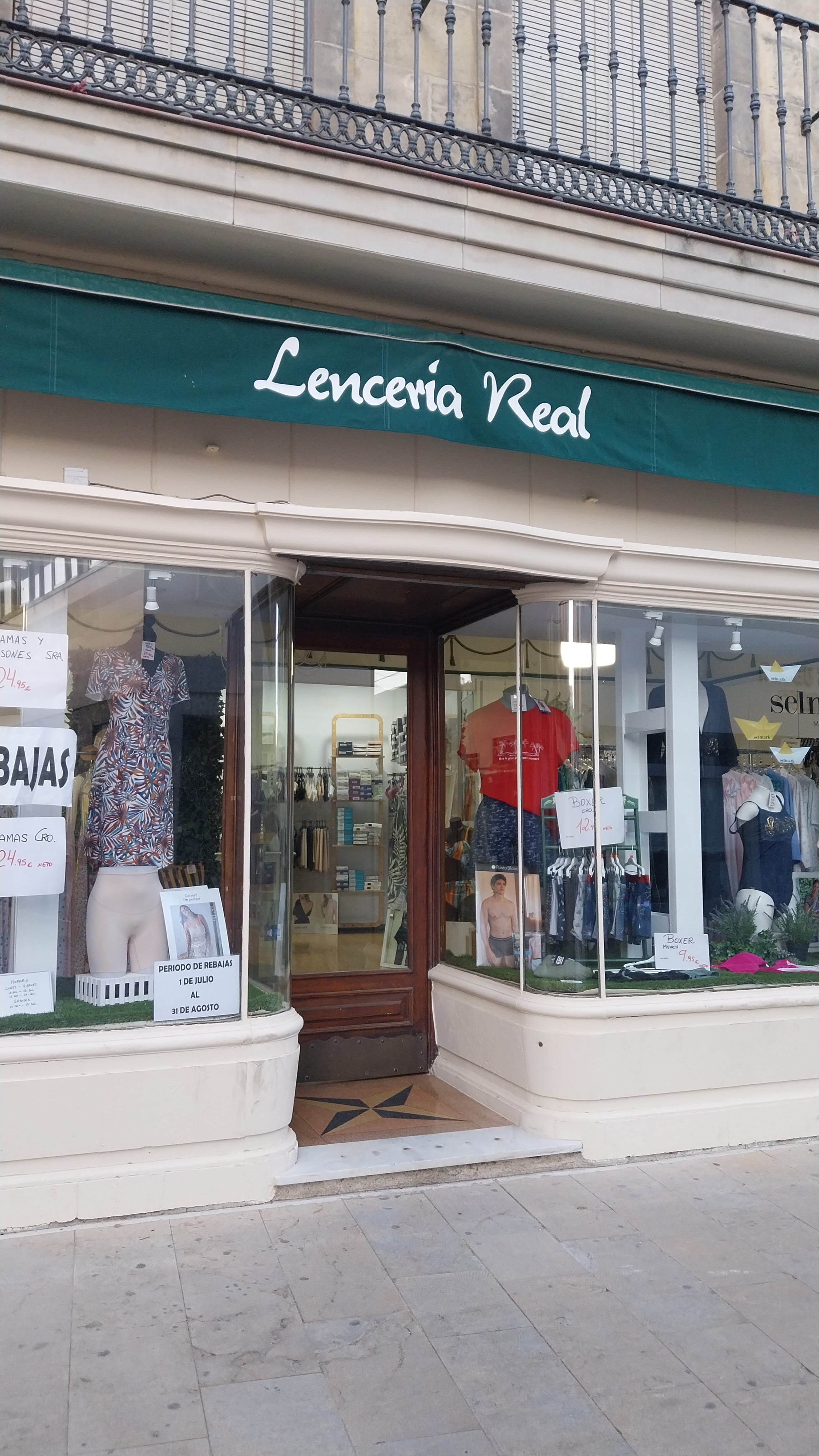 «Lencería Real». Me doy cuenta de que me gustan las tiendas con la puerta retranqueada con respecto al escaparate. Ese espacio mínimo te permite prepararte para salir de la calle, para dejar de ser paseante y convertirte en cliente al entrar en la tienda. Me gusta muchísimo muchísimo que los escaparates sean redondeados, como los de la Lencería Real. Casi entro a comprarme algo.