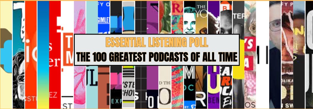 Hace unos meses, en una de las cincuenta newsletters que leí, vi que Alan Black, un tipo canadiense, había lanzado una encuesta a creadores y gente de la industria para elegir los 100 mejores podcasts de la historia. En un momento de espontaneidad escribí a Alan para preguntarle si contemplaba la posibilidad de incluir entre los votantes gente de habla no inglesa que pudiera enriquecer ese listado. Me contestó muy amable diciendo que en principio no, porque blablablabla. Mi rapto de espontaneidad continúo y le insistí en que era una pena y que, en todo caso, si decidía no incluirlo tendría que cambiarle el título a la lista “Los 100 mejores podcasts en inglés de la historia”. Alan lo pensó durante unos días y acabó contestándome que creía que tenía razón y que sí, que lo iba a abrir a otros países. Me pasé un mes compartiendo el enlace con gente de España, pero también de México, Argentina, Colombia, Italia, Polonia, Bélgica, Francia. Vamos, que me decías «hola» y yo te calzaba el link para votar. Voté y me olvidé del tema y hace un mes se publicó la famosa lista.
